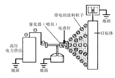 2.涂料帶電:涂料經過噴嘴霧化后,其微粒在接觸噴槍的電極時帶電。在電暈放電產生的氣體電離區,涂料微粒的表面電荷密度進一步增加。